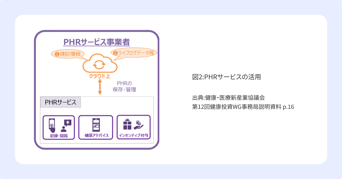 そもそもPHR活用に関して、設問内に注記のある『PHR活用の考え方』の説明資料には、従業員が自身のPHRを活用するパターンとして、以下3つが想定されていました。